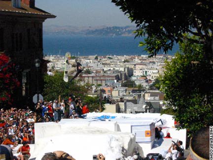 On Thursday, September 29, 2005, Olympic gold medalist Johnny Moseley brought "Icer Air 2005" to San Francisco. Two hundred tons of snow were brought in so that Moseley and other top ski aerialists could make the daring jump, northbound from Fillmore and Vallejo Streets, over Broadway, ending on Green Street.