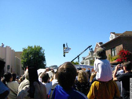 On Thursday, September 29, 2005, Olympic gold medalist Johnny Moseley brought "Icer Air 2005" to San Francisco. Two hundred tons of snow were brought in so that Moseley and other top ski aerialists could make the daring jump, northbound from Fillmore and Vallejo Streets, over Broadway, ending on Green Street.