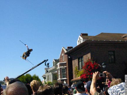 On Thursday, September 29, 2005, Olympic gold medalist Johnny Moseley brought "Icer Air 2005" to San Francisco. Two hundred tons of snow were brought in so that Moseley and other top ski aerialists could make the daring jump, northbound from Fillmore and Vallejo Streets, over Broadway, ending on Green Street.