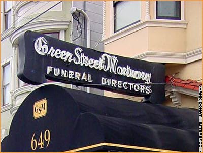 late jazz photographer/filmmaker Jerry Stoll. The mortuary sign appears