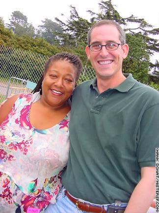 Pine Sol lady Diane Amos with Cow Hollow resident Jeff Halpern.