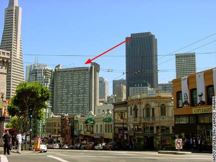 ![]() Sniper trajactory from the BofA Building to the Chinese Cultural Center swimming pool. |