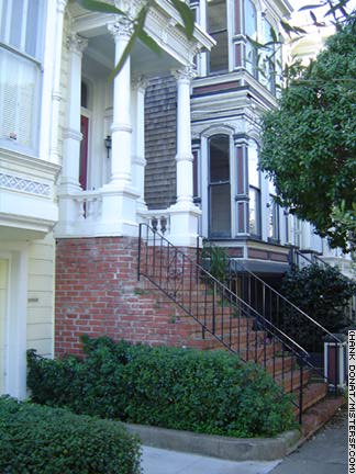 Full House is the uber-corny, uber-saccharine family sitcom that ran from 1987-1995 and will live forever in reruns. Though often named as one of the Painted Ladies of Postcard Row, Mister SF can reveal that the Full House house is actually located several blocks away at 1709 Broderick Street. The series, a worldwide children's favorite, stars adults Bob Saget, John Stamos, Dave Coulier, and Lori Loughlin along with a bunch of kids who grew up to be addicts and anorexics. As the Tanners of Full House prove, such things are bound to happen even in those families with the most wholesome of outward appearences. Postcard Row only appears in a credit sequence when the Tanner family picnics on the hill in front of it in Alamo Square park. Detail I |