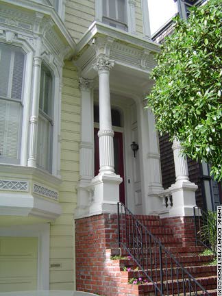 Full House is the uber-corny, uber-saccharine family sitcom that ran from 1987-1995 and will live forever in reruns. Though often named as one of the Painted Ladies of Postcard Row, Mister SF can reveal that the Full House house is actually located several blocks away at 1709 Broderick Street. The series, a worldwide children's favorite, stars adults Bob Saget, John Stamos, Dave Coulier, and Lori Loughlin along with a bunch of kids who grew up to be addicts and anorexics. As the Tanners of Full House prove, such things are bound to happen even in those families with the most wholesome of outward appearences. Postcard Row only appears in a credit sequence when the Tanner family picnics on the hill in front of it in Alamo Square park. Detail