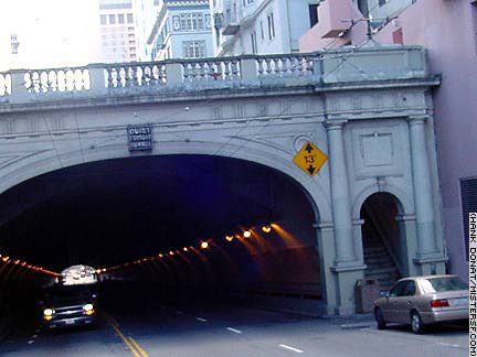 (In real life, buses run through the tunnel, not on the street above.)