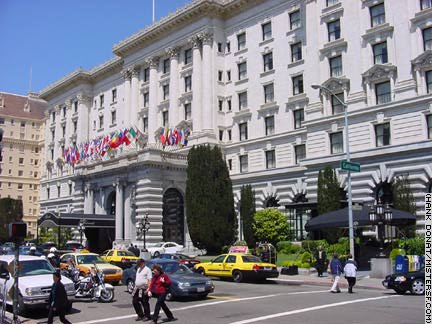 From 1983-1988, the Nob Hill landmark Fairmont Hotel played the title role in the ABC television series Hotel, based on the novel by Arthur Haley. Known as the St. Gregory in the Aaron Spelling series, this was the setting for romance and drama that swept through the lives of the hotel's staff and celebrity guests. Like The Love Boat, this was an anthology series featuring a museum of semi-retired television and film stars. Even Bette Davis got into the act, as St. Gregory owner Laura Trent in the pilot episode. Starring James Brolin, Connie Sellecca, and Anne Baxter, whose Victoria Cabot character took over the matriarch role from Davis. Film buffs will note that Baxter played the conniving Eve, who takes over Bette's life in 1950's All About Eve. As the St. Gregory, the Fairmont also made cameo appearances in the Spelling/ABC series Dynasty, a fan favorite and camp classic shown at gay bars in the Castro throughout the 1980s. Detail I |