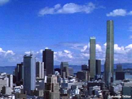 skyline is (dis)graced by two impossibly mammoth towers in The Towering