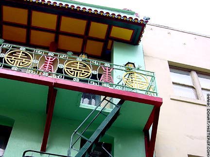 ![]() Victim #2 is pushed from the balcony of "Man Loh's Oriental Roof Garden," 772 Commerical Street. Detail |