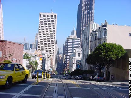 California and Powell Streets. (Then and Now.) The building where Sheridan visits Dr. Hohler is gone but you can still park your car at the former Coast Garage. Follow the woman on the run south from the call booth, down Powell at California.