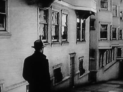 ![]() California and Powell Streets. (Then and Now.) The building where Sheridan visits Dr. Hohler is gone but you can still park your car at the former Coast Garage. Follow the woman on the run south from the call booth, down Powell at California. |