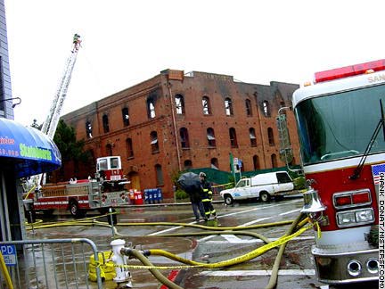 , 680 Beach Street, smolders the morning after a March 17, 2002 fire destroyed the historic landmark along Fisherman's Wharf.