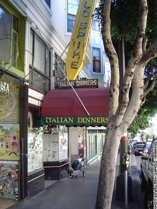 With its perfect location in the vibrant center of North Beach, the Gold Spike was a haven for much local clutter, er color, that's it, for many decades. Big food and walls lined with business cards from patrons all over the world were hallmarks of the Gold Spike, which closed in February, 2006 following a dispute between owner Paul Mechetti and his landlord over retrofitting and repairs. Originally known as the Columbus Candy Store and Soda Fountain, the Gold Spike was founded by Mechetti's grandparents in 1920. |
