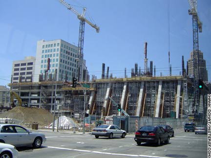 In 2004, a new federal building rose where the Old Greyhound Bus Depot once stood. The bus yard closed about 15 years earlier. (50 Seventh Street/1124-1126 Mission Street)