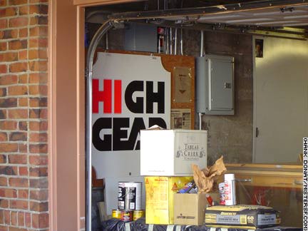 This sign, spotted in a neighboring garage, is a souviner of High Gear. The clothier to the gay community dates back to when the Castro uniform included tube-shaped gym bags and gym shorts with piping.