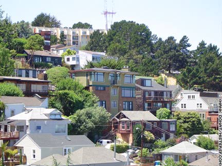 Every year San Francisco comes closer to losing another among a finite number of century old redwood cottages. This footprint is all that's left of one such irreplaceable cottage at 132 Laidley Street in the southern part of Noe Valley. When it was demolished in 2000, its redwood planks filled a dumpster with a reddish gleam. See the property as it appeared in 1907. Preservationists are in a constant struggle for development that balances neighborhood character with the wants of commercial interests in San Francisco. An association of Noe Valley neighbors wary of development here sprang up overnight to prevent the construction of a mansion on a hill not far from the Laidley property. The neighborhood group was no match for the lawyers, architects, and city planners lined up against them. Construction of a so-called monster home - a 4,000 square foot, 4-story, single-family home with working elevator - on Zircon Place was well underway in 2001. |