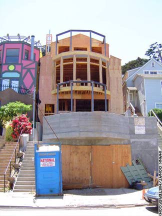 Every year San Francisco comes closer to losing another among a finite number of century old redwood cottages. This footprint is all that's left of one such irreplaceable cottage at 132 Laidley Street in the southern part of Noe Valley. When it was demolished in 2000, its redwood planks filled a dumpster with a reddish gleam. Preservationists are in a constant struggle for development that balances neighborhood character with the wants of commercial interests in San Francisco. An association of Noe Valley neighbors wary of development here sprang up overnight to prevent the construction of a mansion on a hill not far from the Laidley property. The neighborhood group was no match for the lawyers, architects, and city planners lined up against them. Construction of a so-called monster home - a 4,000 square foot, 4-story, single-family home with working elevator - on Zircon Place was well underway in 2001. |