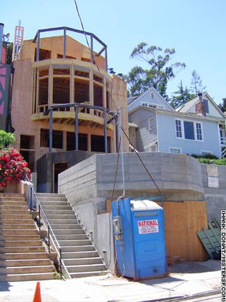 Every year San Francisco comes closer to losing another among a finite number of century old redwood cottages. This footprint is all that's left of one such irreplaceable cottage at 132 Laidley Street in the southern part of Noe Valley. When it was demolished in 2000, its redwood planks filled a dumpster with a reddish gleam. Preservationists are in a constant struggle for development that balances neighborhood character with the wants of commercial interests in San Francisco. An association of Noe Valley neighbors wary of development here sprang up overnight to prevent the construction of a mansion on a hill not far from the Laidley property. The neighborhood group was no match for the lawyers, architects, and city planners lined up against them. Construction of a so-called monster home - a 4,000 square foot, 4-story, single-family home with working elevator - on Zircon Place was well underway in 2001. |