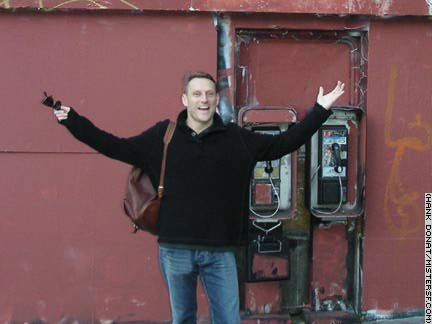 ![]() Don't ask why Mister SF posed in front of this phone booth in 2006 - okay, the deliciously inappropriate graffito and the billboard above have been cropped - but a few months later workers cropped the phone, too. |