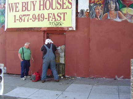 ![]() Don't ask why Mister SF posed in front of this phone booth in 2006 - okay, the deliciously inappropriate graffito and the billboard above have been cropped - but a few months later workers cropped the phone, too. Detail |