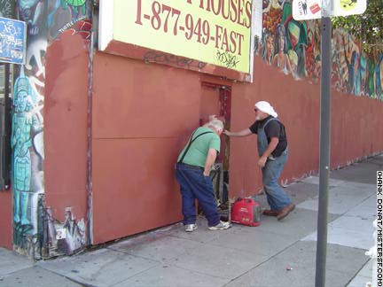 ![]() Don't ask why Mister SF posed in front of this phone booth in 2006 - okay, the deliciously inappropriate graffito and the billboard above have been cropped - but a few months later workers cropped the phone, too. << Back |