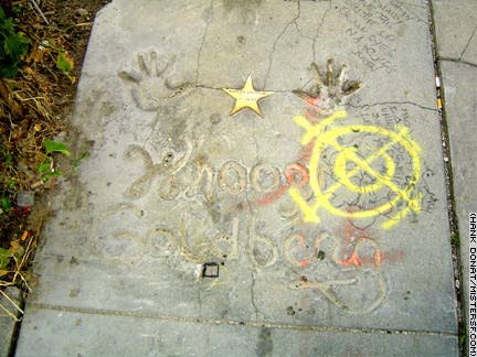 "Arriving at the Carmichael School construction site, I find that the partial handprints and signatures of Whoopi Goldberg, George Takei, Bobcat Goldthwait., Amy Wright, and Severn Darden are all that remain of the San Francisco Studios Walk of Fame, 375 7th Street. Indeed, Herve Villechaize has been lopped off and paved over. Only the top half of his brass star is intact." - More about the walk of Fame in Heart of the City 06/29/04 Detail: Former Walk of Fame Location |