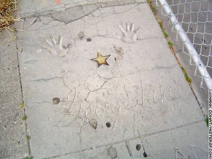 "Arriving at the Carmichael School construction site, I find that the partial handprints and signatures of Whoopi Goldberg, George Takei, Bobcat Goldthwait, Amy Wright, and Severn Darden are all that remain of the San Francisco Studios Walk of Fame, 375 7th Street. Indeed, Herve Villechaize has been lopped off and paved over. Only the top half of his brass star is intact." - More about the walk of Fame in Heart of the City 06/29/04 Detail: Former Walk of Fame Location |