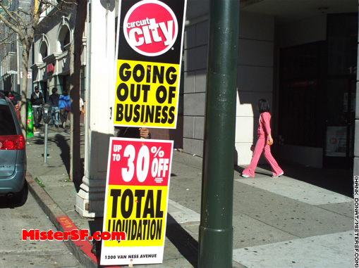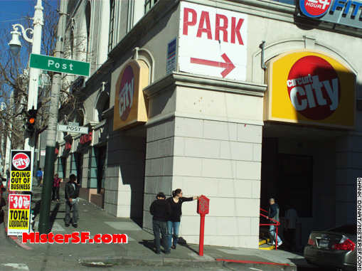 originally posted 1/21/09: Dateline: 1200 Van Ness Avenue, where Circuit City is seen here, 30% closer to it final day. More than 30,000 people nationwide will lose their jobs before the bankrupt electronics empire closes its last sale in March. I patronized this location for many years because it was convenient to my apartment on Bush Street, the prices were good on brands I liked, and the service was better than The Good Guys. But, like most, I dropped them in the 00s for the Apple store and Best Buy.