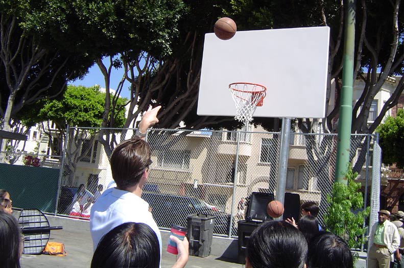 from Sts. Peter and Paul School and shooting baskets one-handed while
