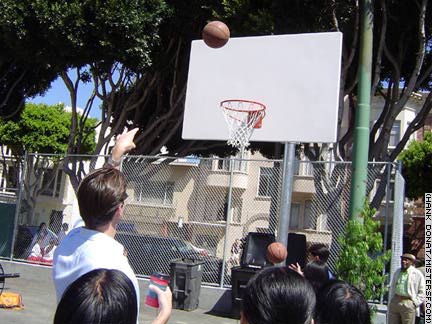 from Sts. Peter and Paul School and shooting baskets one-handed while
