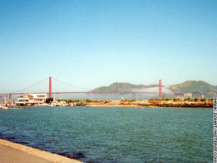 "The fog comes Cats are okay, but when Mister SF sees the fog coming in over the Gate Bridge from the Marina, he's reminded of King Kong, the beast's fingers gently wrapped around the Empire State Building. No matter how you look at it, the fog is San Francisco's mood ring. Here's another shade. Foghorns The City's foghorns wail in a variety of sounds. There are sirens (single pitch contralto), the air horn (single pitch baritone), and the diaphone (various sounds, 200 decibels at max power.) |