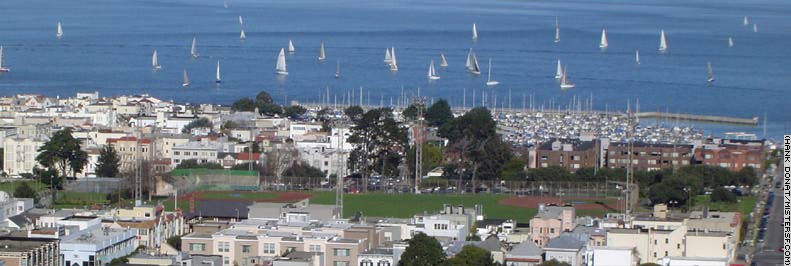 If stereotypes about the Marina are to be believed then the George Moscone Recreation Center - between Chestnut Street and Bay, Laguna Street and Webster - is Ken and Barbie's sandbox. Features of the park include tennis courts, baseball diamonds, children's playground, basketball courts, and putting green. |