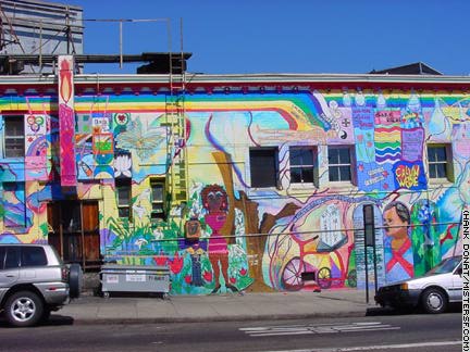 San Francisco is a great Mural Town. Throughout history, murals have been used to communicate the scale and drama of the artists' themes. Mission District murals often depict the struggle for human rights and freedom by the working class. Choose the links to see how San Francisco paints the town.