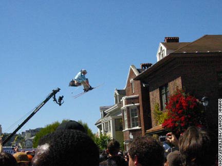 On Thursday, September 29, 2005, Olympic gold medalist Johnny Moseley brought "Icer Air 2005" to San Francisco. Two hundred tons of snow were brought in so that Moseley and other top ski aerialists could make the daring jump, northbound from Fillmore and Vallejo Streets, over Broadway, ending on Green Street.