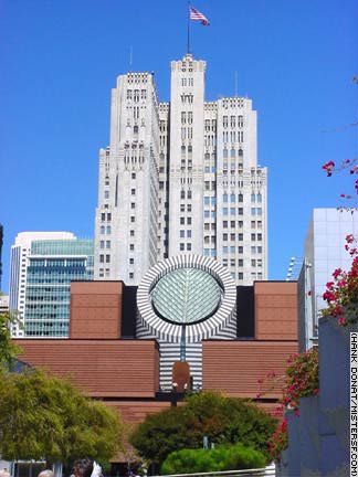 |  Old and new architecture: SF MOMA and Pacific Telegraph and Telephone Bldg. seen from Yerba Buena Gardens << Back | Yerba