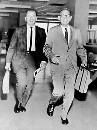 Herb Caen and Stanton Delaplane in 1960. Delaplane was awarded the Pulitzer Prize in 1942, Caen in 1996. Delaplane often composed his column at Gino and Carlo in North Beach. He is credited with bringing Irish Coffee to San Francisco via the Buena Vista, where this photo of Caen and Delaplane hangs over the bar. |