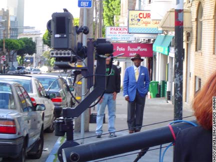 ![]() May 24, 2004: Former Mayor Willie Brown tapes comments for a Beach Blanket Babylon 30th anniversary program at Powell and Green Streets. |