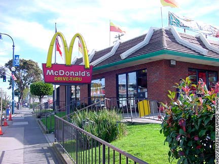 Chain of Fools: In a City where chain stores are as welcome as malignant tumors, even the crack addicts were surprised in January, 2003 when a 7-Eleven store opened on Market Street near Sixth. The owner of the franchise convenience store, Rakesh Patel, says his 7-Eleven will help revitalize mid-Market and will attract customers from the nearby shopping district at Fifth and Market. 7-Eleven stores are already open in San Francisco at Ocean Avenue, Taraval Street, 18th Street, and 46th Avenue. The City's first fast food chain restaurant was a Jack-in-the-Box at 1888 Lombard Street, opened in 1970. The first McDonald's arrived a year later, at 1201 Ocean Avenue. The Lombard St. Jack-in-the-Box closed in 2000, making the Ocean Ave. McDonald's San Francisco's oldest surviving fast food chain restaurant at this writing in January, 2004. |