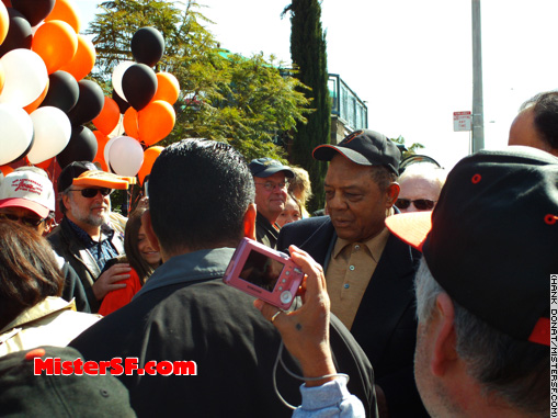 April 15, 2008 Giants Celebrates 50 years in SF!   Baseball Icons: Orlando Cepeda hit his first major league home run on opening day in 1958. Cepeda greets guests and media people at the Seals Stadium location 50 years later.   On