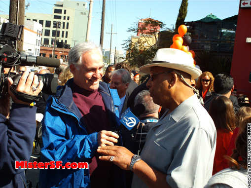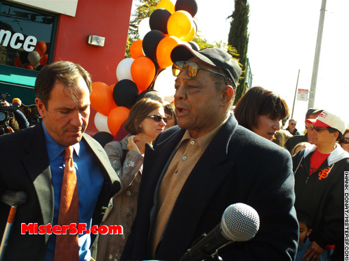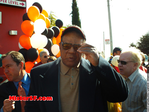 April 18, 1958, the Giants beat the Dodgers 8-0.   The Say Hey Kid: Baseball's greatest living hero, Willie Mays arrives at the former Seals Stadium site.         |