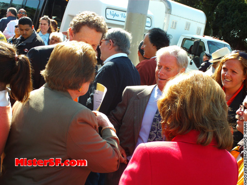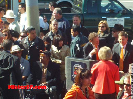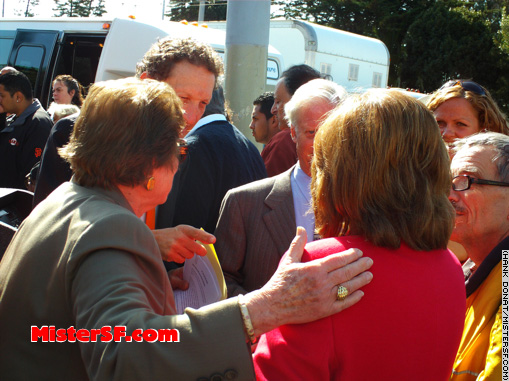 April 15, 2008 Giants Celebrates 50 years in SF!   Giants Executive Vice-President and Chief Operating Officer Larry Baer greets dignitaries and guests including Helen Christopher and Ethel Davies, sisters of the late George Christopher, San Francisco's 34th mayor. Christopher was instrumental in bringing the Giants to San Francisco from New York in 1958.         |