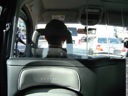 Early in 2004, San Francisco celebrated the arrival of a dozen custom-built London Taxis. The taxis, square and black, are an elegant addition to the streets of San Francisco. Like cresting cable cars, they provide memorable silhouettes for tourists, photographers and all admirers of the cityscape. According to Taxi Commission President Arthur Jackson, the spacious interiors were designed to accommodate wearers of top hats! Mister SF takes a spin courtesy of the commission's representative, Kelly Castagnaro, the charming San Franciscan sometimes known as Ms. Castro District. The new taxis have been added to the fleets of both the Luxor and Royal cab companies. Detail I |