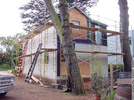 03/05/05: Sunset District Neighbors and SF history buffs gathered at 4329 Kirkham Street near 47th Avenue, where workers removed four 1906 Earthquake Shacks. Fewer than 25 remain of the 5000 shacks that were retrieved from camps following the City's recovery from the 1906 Earthquake and Fire. Members of the Western Neighborhoods Project spearheaded today's effort to relocate the Kirkham shacks to property owned by the San Francisco Zoo. There, the shacks will be renovated for use during Centennial celebrations next year. Detail I:
