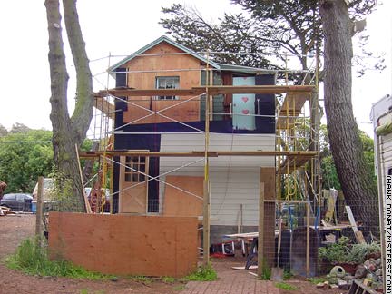03/05/05: Sunset District Neighbors and SF history buffs gathered at 4329 Kirkham Street near 47th Avenue, where workers removed four 1906 Earthquake Shacks. Fewer than 25 remain of the 5000 shacks that were retrieved from camps following the City's recovery from the 1906 Earthquake and Fire. Members of the Western Neighborhoods Project spearheaded today's effort to relocate the Kirkham shacks to property owned by the San Francisco Zoo. There, the shacks will be renovated for use during Centennial celebrations next year. Detail I: