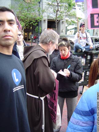 ![]() In the City of St. Francis, Brother Richard Cardarelli represents the compassionate saint. Brother Cardarelli calls gay marriage "an issue of justice." He marched in solidarity with Massachusetts. |