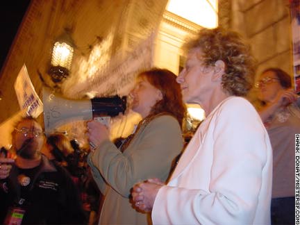 600 demonstrators gathered at Market and Castro Streets at dusk for a march to