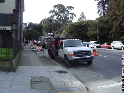 ![]() Overhead wires become a thing of the past along Oak Street at Baker in February, 2007. |