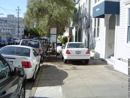 thinks nothing of parking on the sidewalk so she can wash her Mercedes.